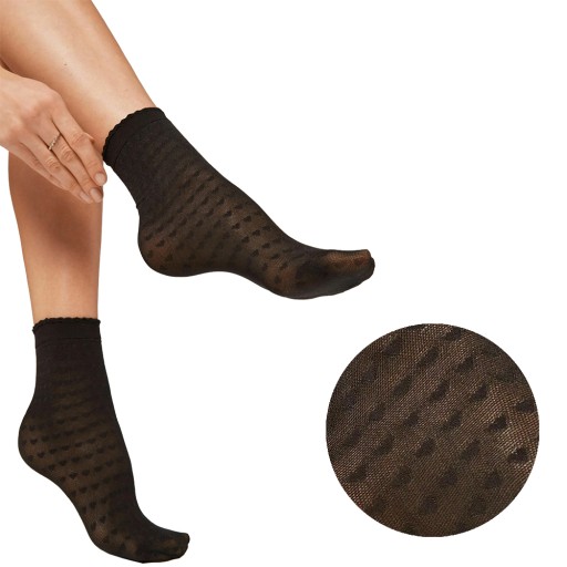 Cienkie skarpetki o grubości 20 den ze wzorem w serduszka.