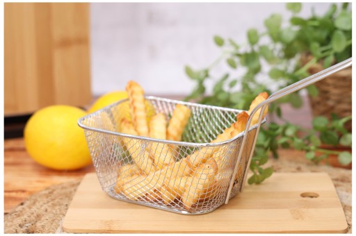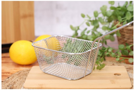 ✅ Wygodny długi uchwyt - Koszyczek posiada długi uchwyt, który zapewnia wygodę podczas przenoszenia i serwowania potraw.