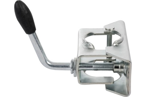 Solidne stalowe koło podporowe z ocynkiem. Wyposażone w łożysko oporowe ułatwiające rozruch i pełną oponę z gumy. Korba logowana symbolem Unitrailer. Obejma koła podporowego Unitrailer została wyprodukowana z wytrzymałej stali. Wyposażona w docisk śrubowy pozwoli na bezpieczne użytkowanie koła podporowego przyczepy. Do montażu obejmy wystarczą dwie śruby o średnicy 10 mm.