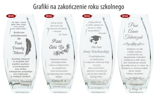 - Po zakupie prosimy wybrać wzór/numer grafiki (np. wzór z miniaturki lub W5_J1, itp.) który mamy wykonać oraz podaj swoje dane które chcesz umieścić na wazonie (tj. data, nagłówek, podpis). Ww. informacje prosimy wpisać w pole "Uwagi do zakupu" przy składaniu zamówienia