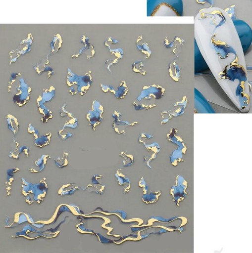 Самоклеящиеся наклейки для ногтей. Для украшения: золотисто-синий мрамор.