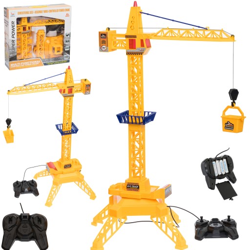 Sterowany dźwig, który pozwoli dziecku wcielić się w rolę budowlańca. Żuraw opuszcza hak na dół oraz podnosi go do góry. Na końcu haka można zaczepić wiaderko. Ramię dźwigu obraca się w prawo i w lewo.