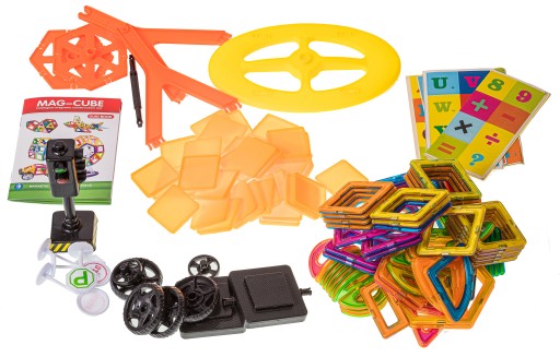 ➤wykorzystane jako pomoc naukowa uczą geometrii, w połączeniu z elementami innych zestawów pomogą w nauce matematyki, fizyki czy chemii (klocki kleją się do tablic magnetycznych