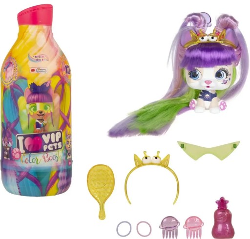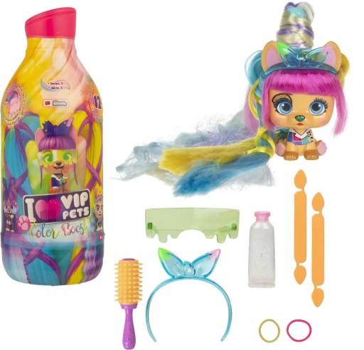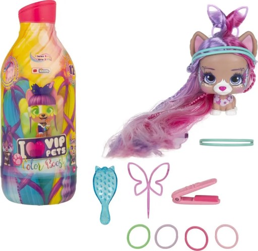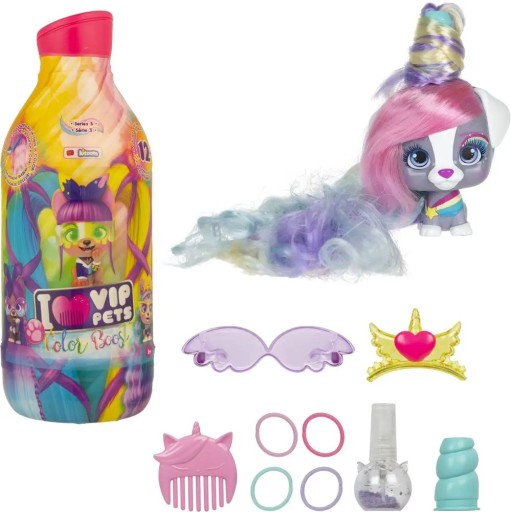 Pochodzi z serii uroczych figurek piesków I Love Vip Pets, które mają długie kolorowe włosy oraz zestaw akcesoriów do ich czesania i stylizowania.