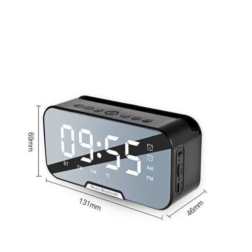Zegar Lustrzany Led Głośnik Bluetooth 5.0 Radio FM Termometr Budzik Czarny