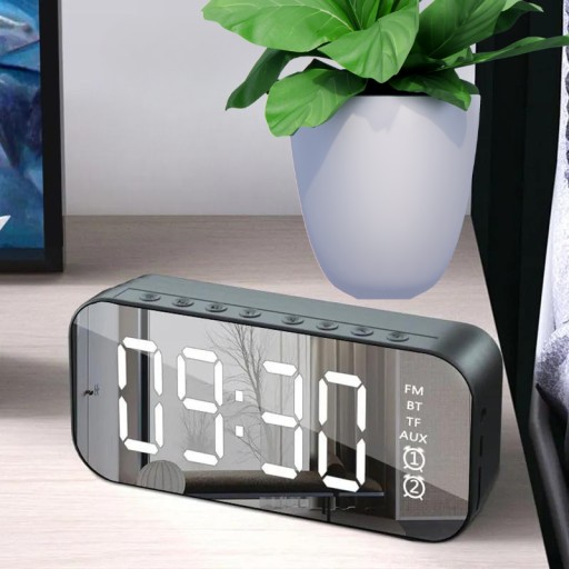 - Głośnik Bluetooth z zegarem LED, idealny do każdego wnętrza.