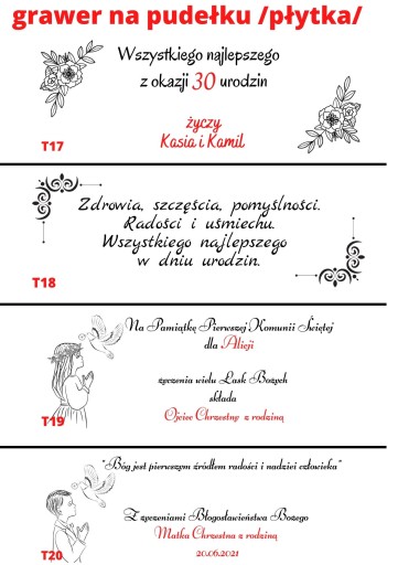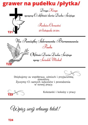 UWAGA: Prosimy o Sprawdzanie wiadomości w allegro ponieważ niektóre grawery wymagają akceptacji wtedy projekty są wysyłane w wiadomości allegro. Czas na akceptację to 4 godziny od otrzymania projektu. Po tym czasie niema możliwości zmiany projektu a projekty nie potwierdzone automatycznie idą do realizacji.