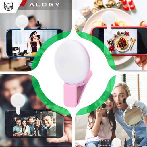 ▶️ Lampka LED Alogy Mini Selfie Ring Klips do nagrywania robienia zdjęć do telefonu z klipsem Różowa