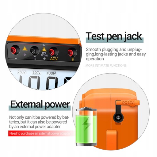 Megaomomierz MH10 DC 100/250/500/1000V AC750V Do Urządzeń Elektrycznych Pomarańczowy