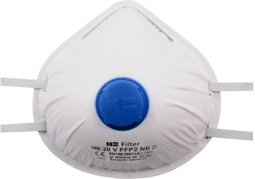 Półmaska filtrująca jednokrotnego użytku MB 20 V FFP2 NR D stanowi kompletny sprzęt ochrony układu oddechowego przed aerozolami z cząstek stałych i ciekłych. Półmaska przeciwpyłowa jest przeznaczona do ochrony układu oddechowego przed aerozolami z cząstek stałych lub aerozolami na bazie wody (pył, dym) oraz aerozolami ciekłymi (mgły), o ile stężenie fazy rozproszonej tych aerozoli w powietrzu nie przekroczy wartości 10 x NDS.