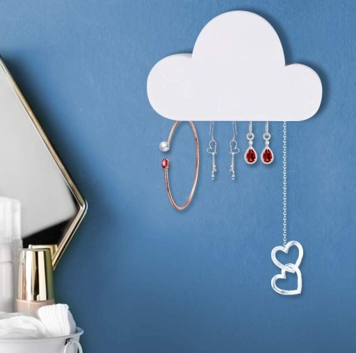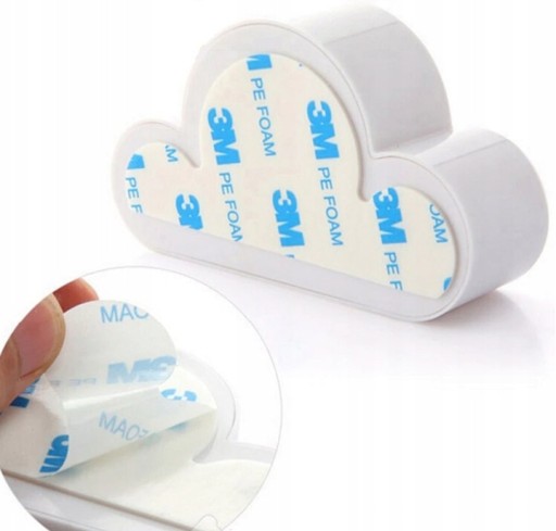 - Kompaktowy, samoprzylepny wieszak na klucze w kształcie chmurki.