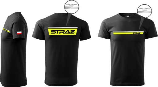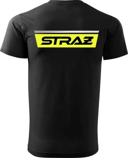 - PRZÓD nadruk STRAŻ na fluorescencyjnym pasku + odblaskowy pasek nad nadrukiem