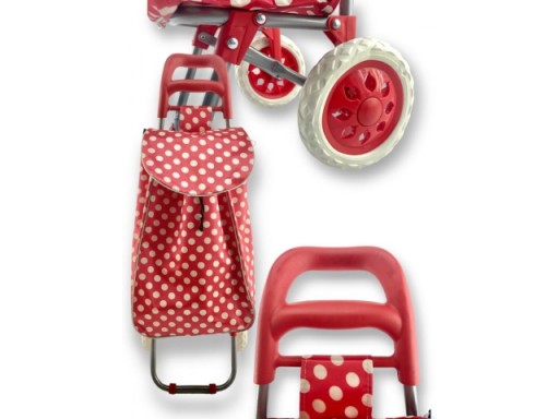 Wózek Punti - Czerwona w kropki - Kółka Biało-czerwone 16,5 cm - 35L