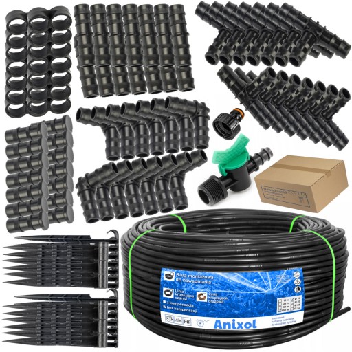 Montaż systemu nawadniającego nie jest skomplikowany i tak naprawdę można to zrobić samodzielnie. Elementy są stabilizowane przy podłożu za pomocą specjalnych szpilek. Linie kroplujące łączy się z złączkami trójnikami lub kolankami natomiast kończy korkiem lub okularem.
