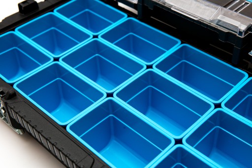 Praktyczna skrzynka o dużej pojemności. Jej pogrupowane wnętrze i tacki eksponujące narzędzia po otwarciu znacznie ułatwiają pracę. Dzięki wygodnemu uchwytowi skrzynkę można bez problemu transportować. Produkt został wykonany z wysokiej jakości materiałów, co zapewnia jego trwałość i wytrzymałość.