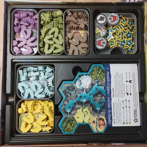 - Pojemnik na żetony Punktacji regionu, przypominające oraz zwierzyny