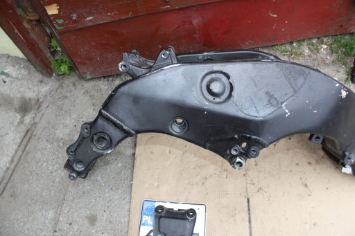 Rama zarejestrowana w Polsce z kompletem dokumentów 2008r. przebieg 31.000km dowód nie zabrany w historii brak jakichkolwiek szkód komunikacyjnych. Sama rama po naprawach do dokończenia jak widać na zdjęciach. Dorabiany był ogranicznik i poprawiana na spawach w standardowych miejscach gdzie pęka.