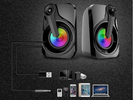 Głośniki biurkowe są wyposażone w kabel audio 3,5 mm i kabel USB, który nadaje się do większości urządzeń elektronicznych kompatybilnych z USB i interfejs audio 3,5 mm. Kompatybilny z komputerami PC, telewizorem, laptopem, MP3, MP4, Walkmanem, odtwarzaczem CD, radiem, konsolą do gier