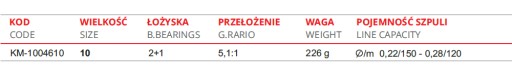 - Pojemność szpuli : 0,22/150 - 0,28/120
