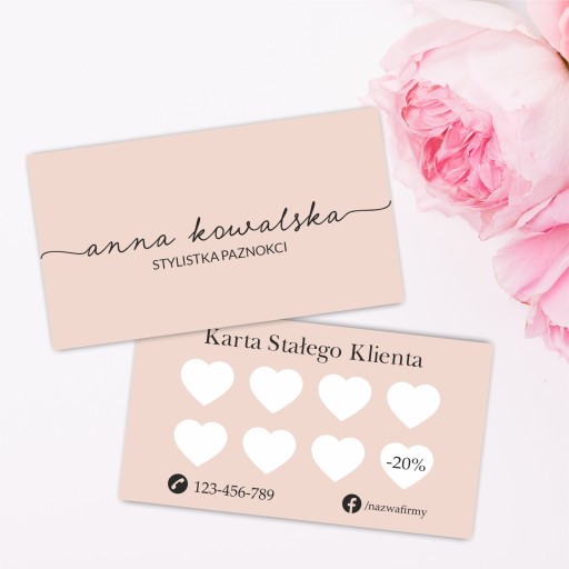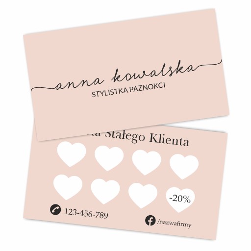 Eleganckie karty rabatowe w kolorze pudrowego różu.