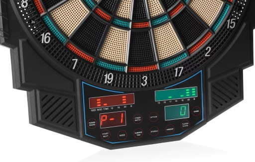 Do dyspozycji masz aż 27 gier, które zapewniają aż 500 odmian. Dlatego gra nigdy Ci się nie znudzi. Podczas jednej rozgrywki może grać aż 8 osób, dlatego udział w rozgrywce weźmie każdy domownik lub członek imprezy. Chcesz dopracować swoje umiejętności i stać się lepszym graczem? Tarcza umożliwia grę dla jednej osoby. Punktacja dla każdego segmentu pozwoli Wam śledzić wynik rozgrywki. Możesz być pewien, że ten zestaw zapewni Ci grę na wysokim poziomie. Wraz z tarczą otrzymasz 6 rzutek z 50 wymiennymi końcówkami. Nie musisz więc dokupywać osobno akcesoriów. Gra już skończona, a Ty nie pamiętasz, czy wyłączyłeś tarczę? Nie musisz się tym przejmować. Tarcza została wyposażona w funkcję automatycznego wyłączenia, gdy jest nieużywana przez 15 minut.