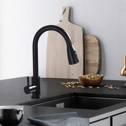 【现代拉出水龙头】用长耐磨尼龙软管拉出厨房水槽水龙头,这样人们就可以自由使用厨房水龙头。