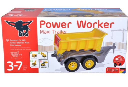 Nowe, potężne akcesorium z linii BIG Power Worker Maxi jest idealnym uzupełnieniem istniejących pojazdów budowlanych BIG Power Worker Maxi. Nową przyczepkę można łatwo przymocować do ciężarówki BIG Power Worker Maxi Truck, Maxi Digger i Maxi Crane za pomocą dołączonego zaczepu do przyczepy i zapewnia ona dzieciom dodatkowe miejsce do przechowywania zabawek do piasku i resztek z placu budowy. Dzięki wysokiej jakości oponom wykonanym z bardziej miękkiego, niebrudzącego plastiku, przyczepkę można bez problemu użytkować również w pomieszczeniach.