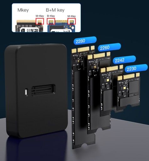 Твердотельный накопитель NVME/SATA PCIe M.2 USB-C Gen2