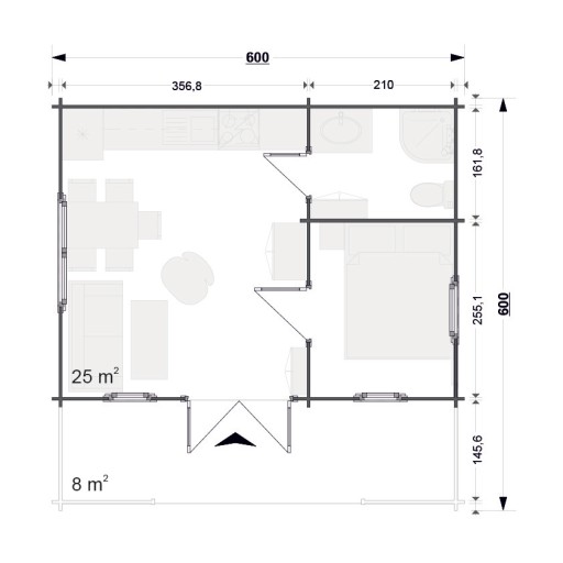 Domek letniskowy z bali profilowanych o wymiarze całkowitym 36 m2 będzie idealnym miejscem na spędzenie wakacji czy ferii zimowych. Przestrzeń zagospodarowana z myślą o funkcjonalności zapewni wystarczająco dużo miejsca na relaksujący wypoczynek