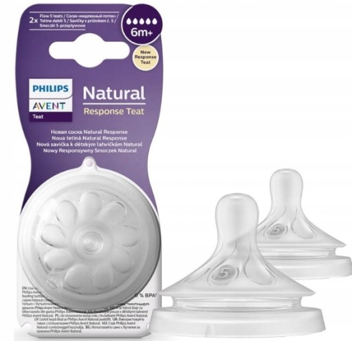 AVENT Natural Соска для бутылочки Response (5) 6мес+