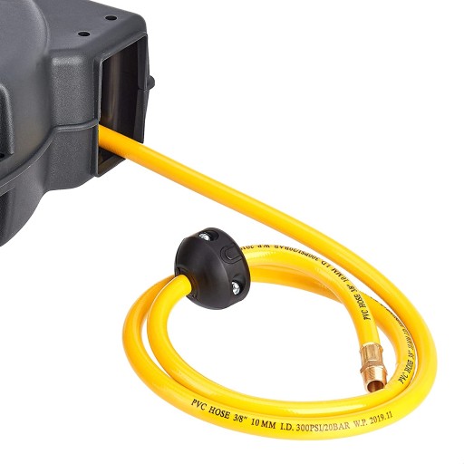 Wykonany z wysokiej jakości odpornego na uderzenia polipropylenu, który jest lekki, kompaktowy i trwały. W zestawie znajduje się regulowany ogranicznik węża oraz 2 rolki nie dociskowe, które zmniejszają ścieranie węża