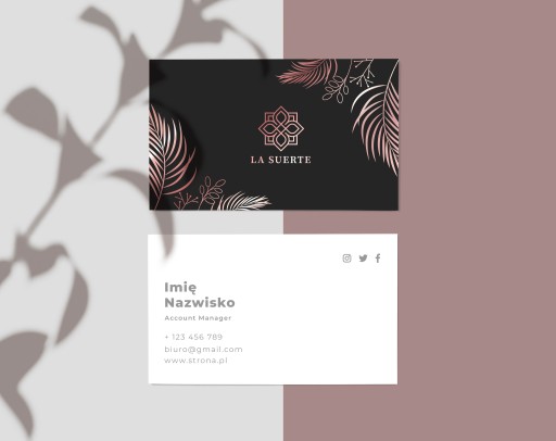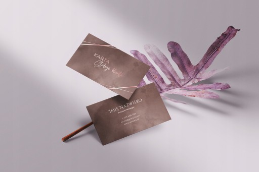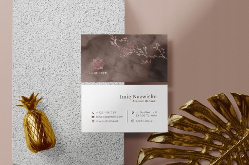 Wizytówki z aksamitną folią Soft Touch w połączeniu z dodatkową folią Rose Gold zostaną z Twoim Klientem na dłużej.