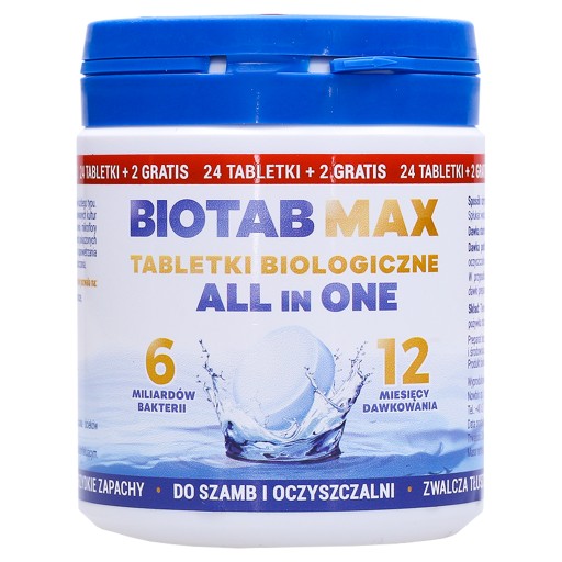 TABLETKI BIOLOGICZNE BIOTAB MAX ALL IN ONE DO SZAMBA / OCZYSZCZALNI - 26 SZTUK