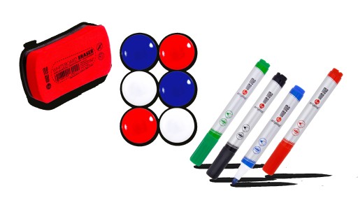 Praktyczny zestaw startowy do białych tablic suchościeralnych.