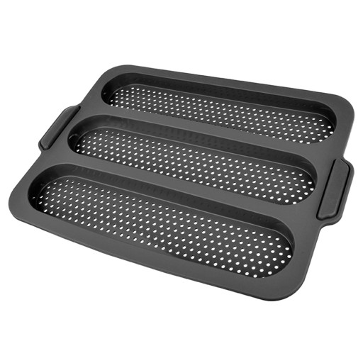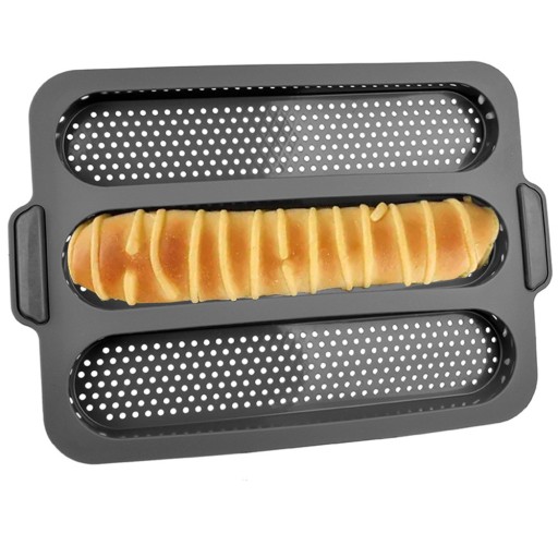 - Ułatwia zachowanie podłużnego kształtu wypieków, dzięki specjalnym wgłębieniom