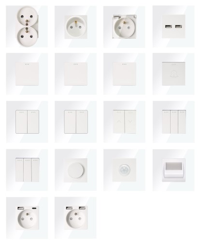 Na osobnych ofertach dostępne są ramki wielokrotne (pojedyncze, podwójne, potrójne, poczwórne i pięciokrotne) w kolorze białym i czarnym oraz moduły do tych ramek
