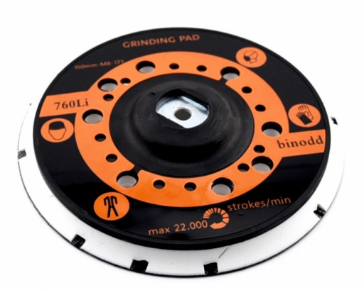 Profesjonalna wielootworowa podkładka 150mm z mocowaniem M8 i systemem mocowania krążków ściernych na „rzep” zapewnia bardzo dobre odsysanie pyłu przy pracy z szeroką gamą papierów ściernych.