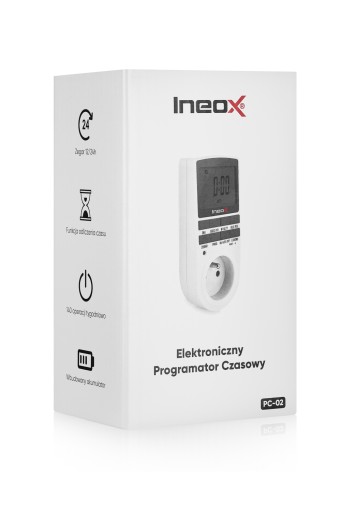 Elektroniczny programator czasowy Ineox PC-02 z funkcją podtrzymania pamięci.