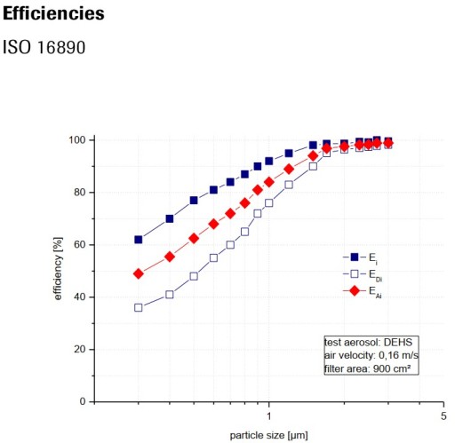 - Wydajność ISO 16890: ePM 1,min 48% , ePM 2,5,min 57%, ePM1 61%, ePM2,5 70%