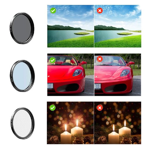 ⭐ Zmień wygląd swojego zdjęcia podczas fotografowania dobierając odpowiednie filtry. Dzięki nim możesz zredukować problematyczne obszary, już podczas robienia zdjęcia. Odbijające się od tafli wody światło, czy prześwietlenie wynikające z robienia zdjęć pod światło, już nigdy nie będzie problemem i już nigdy nie zniszczy Ci ujęcia.