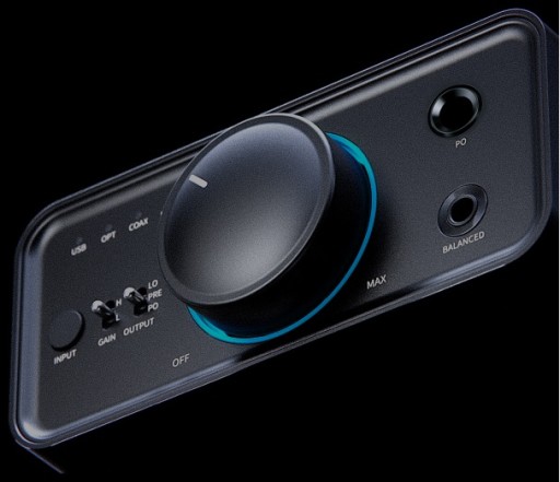 Jedno naciśnięcie poręcznego klawisza pozwala przełączać się między 3 trybami wyjścia (do użytku ze słuchawkami, głośnikami lub jako DAC).