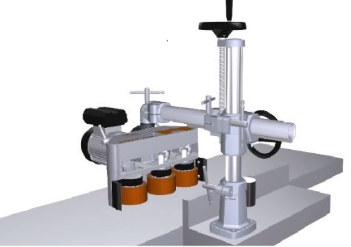 Model 3 rolkowy idealnie nadaję się do podawania małych oraz średnich elementów. Dzięki dwóm kołom podającym i trzeciemu wyprowadzającemu, obrabiany element jest stale i równomiernie przesuwany w trakcie procesu obróbki, co znacznie poprawia jakość obrabianego elementu.
