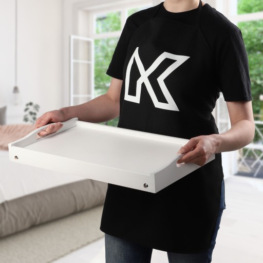 Wymiary blatu wynoszą 49,7 x 29,8 cm; co umożliwi zarówno zaserwowanie śniadania ukochanej osobie, jak i korzystanie na nim z laptopa. Pomocne w przeniesieniu będą dwa uchwyty znajdujące się po obu stronach. Warto mieć go pod ręką!