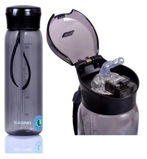 Oferowana przez nas butelka jest wyposażona w nakrętkę wykonaną z poliwęglanu, polipropylenu i tworzywa ABS. Praktycznym dodatkiem jest słomka połączona z ustnikiem. Idealne dopasowanie poszczególnych elementów zapewnia szczelność butelki niezależnie od pozycji, w jakiej jest transportowana. Butelka tritanowa firmy Casno jest dostępna w kilku wariantach kolorystycznych.