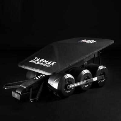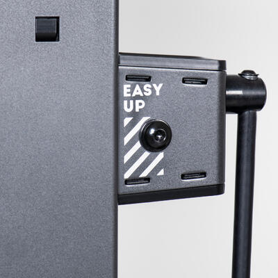 Technologia BOX to innowacja marki Tarmak, która ma jeden cel: łatwe składanie kosza po użyciu, aby nie zajmował miejsca. Zobowiązanie B900 Box: rozkładanie i składanie w minutę. Słupek składa się i przechyla, a tablica obraca się i składa w jednej linii z podstawą, aby zmieścić się pod pokrowcem ochronnym dla łatwego przechowywania. Do pierwszego montażu nie są wymagane żadne narzędzia. Stwórz swój własny plac gry bez zbędnego zabierania miejsca w ogrodzie.