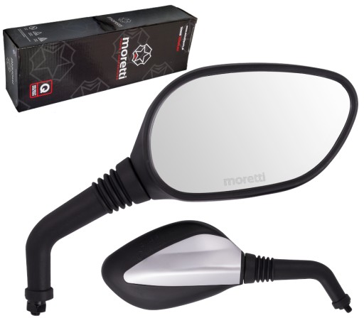 Klasyczne czarno-srebrne lusterka posiadające elegancką obudowę. Posiadają możliwość przegubowej regulacji kąta widzenia, dzięki której możliwe jest indywidualne dopasowanie ustawień do własnych potrzeb. Mocowane są na solidnym metalowym uchwycie zabezpieczonym gumową osłoną. Średnica gwintu wynosi 8 mm.