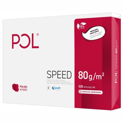 Optymalny poziom bieli zapewnia kontrast przyjazny dla oczu. Jeśli jesteś osobą, która często pracuje z papierem, to POL Speed jest właśnie dla Ciebie. To linia papierów POL, która ma zapewnić szybkie i pozbawione zacięć drukowanie. Świetnie sprawdza się w drukowaniu wielu tekstów naraz, np. w korespondencji seryjnej.