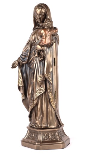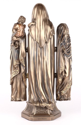 Rzeźba jest pokryta brązem i ręcznie malowana.