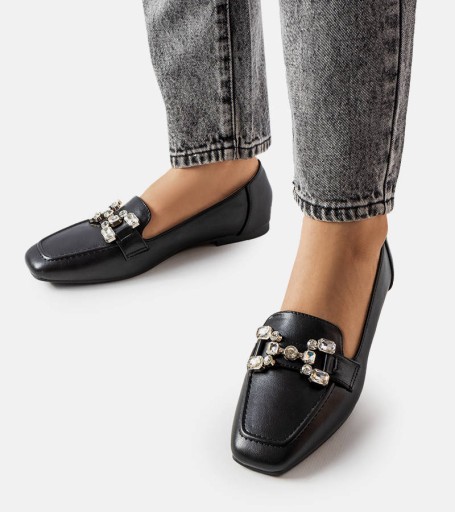 Mokasyny mają kwadratowy nosek, co dodaje im charakteru i wyróżnia na tle innych damskich butów. Niski fason sprawia, że są nie tylko wygodne, ale też bardzo praktyczne i uniwersalne. Wsuwany design ułatwia ich zakładanie i zapewnia szybkie i łatwe użycie.