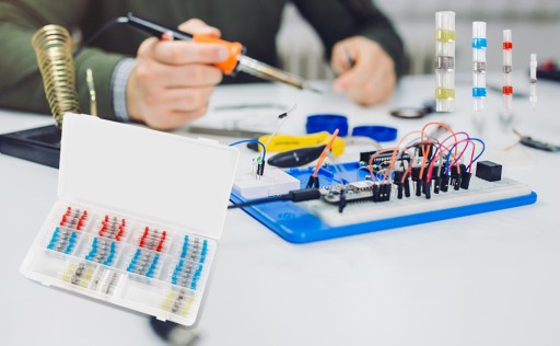 ✔ ZACHOWAJ ORGANIZACJĘ: nasze zasilanie jest dostarczane w ramach przechowywania, łatwego do przechowywania i przenoszenia. Oznaczenia kolorów, które można zastosować w każdym zastosowaniu. Asortyment złączy biały (AWG 26 – 24), czerwony (AWG 22 – 18), niebieski (AWG 16 – 14) i żółty (AWG 12 – 10) z uszczelnieniem lutowanym, które można stosować na przewodach AWG od 26 do 10.